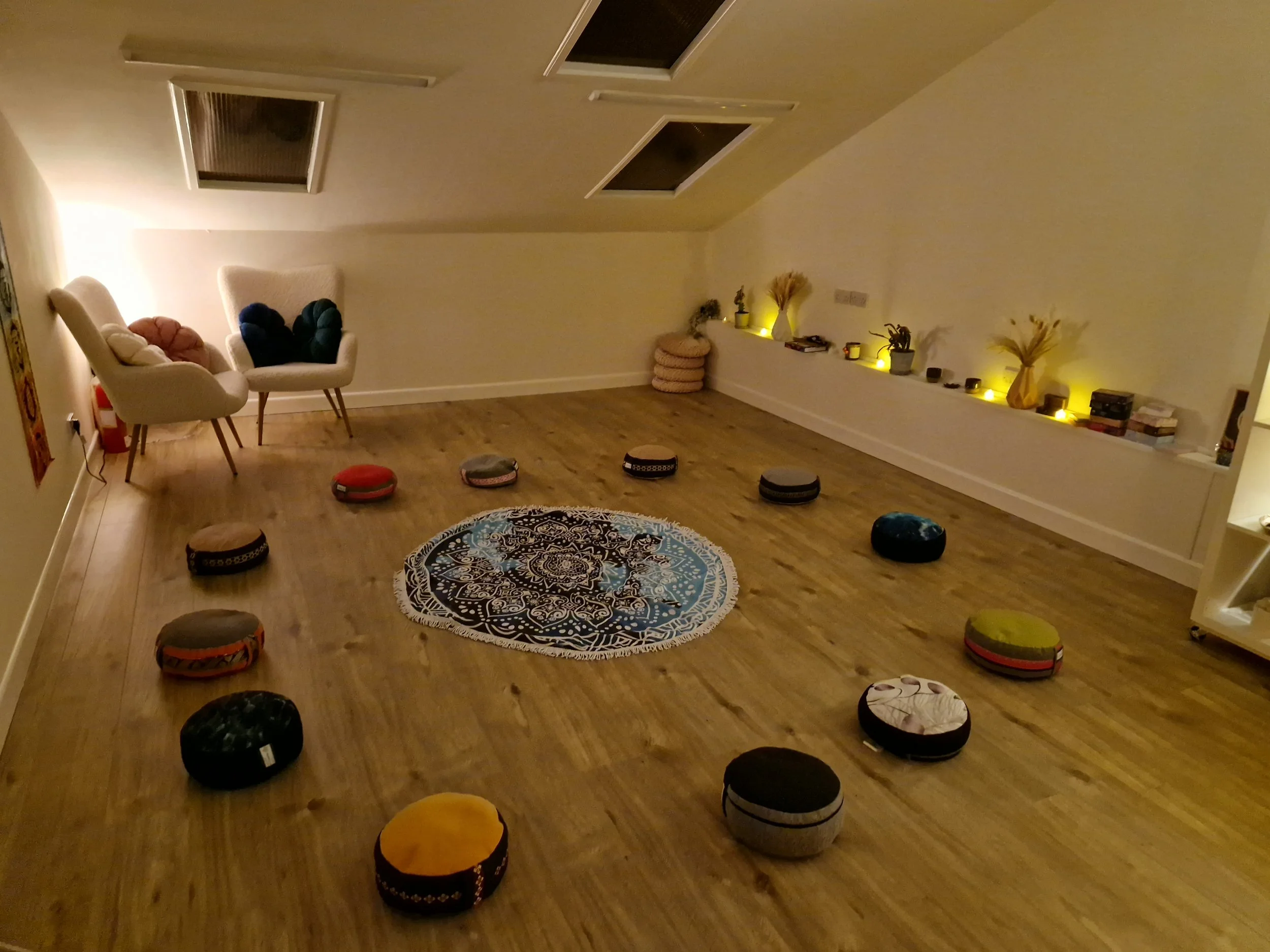 Flexible Open Layout – Ideal for meditation, breathwork, group circles, laying or seated workshops and classes.